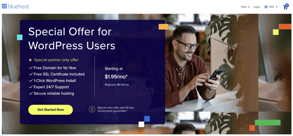 Disclosure: I am an affiliate for Bluehost, and will receive a commission if you sign up through my referral link. This is at no additional cost to you, and you will get great pricing and a free domain name through my link.